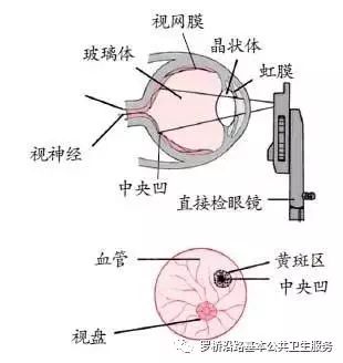 检查眼底时,嘱咐患者平视正前方。由于眼底镜遵循了“三点一线”原理,如同打靶一样,初学者很多时候就是因为未将眼睛、眼底镜检查孔与患者的瞳孔放在同一条直线上,而看不到眼底。