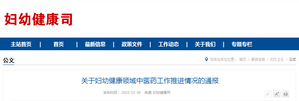 2021年4月20日,国家卫生健康委和国家中医药局研究制定《推进妇幼健康领域中医药工作实施方案(2021-2025年)》,强调推动妇幼保健机构全面开展中医药服务。