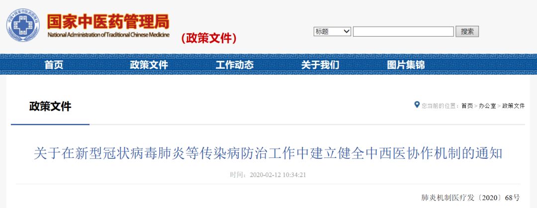 早在2020年2月12日,国家卫健委、国家中医药管理局联合发布通知,要求在新冠肺炎等传染病防治中建立健全中西医协作机制,并就中西医结合救治工作机制、中西医联合会诊制度等工作做出部署。