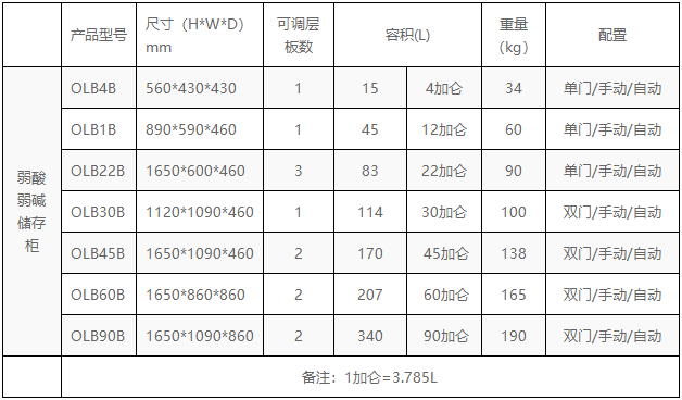 22加仑弱酸碱品存储柜OLB22B